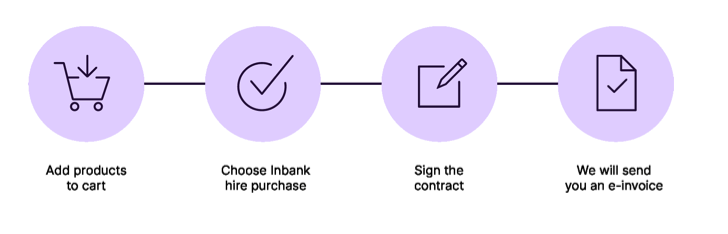 Inbank hire purchase is a flexible payment solution which gives you the ability to pay for goods and services in instalments. Inbank hire purchase allows you to split a large one-time expense into small monthly payments. Spread the purchase sum over up to 4 years. The first payment is due only a month later.